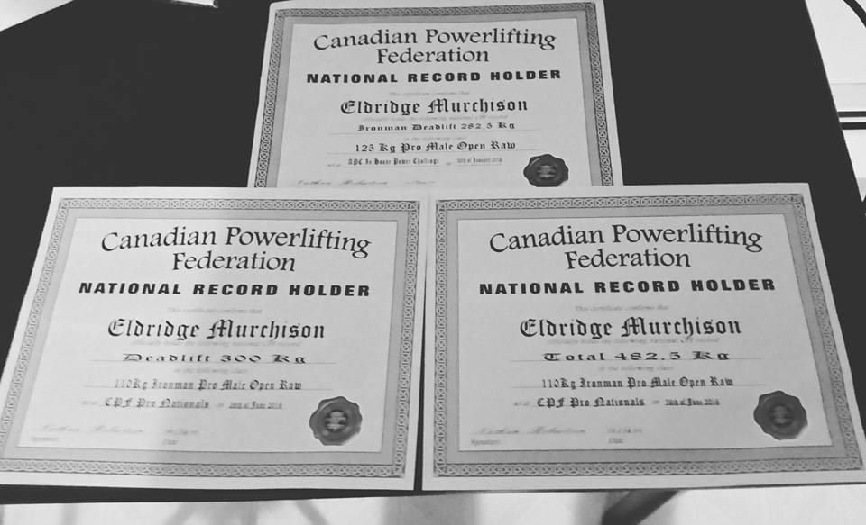 I then turned to competitive powerlifting. Within 8 months of training I broke 3 Canadian National Records under the Canadian Powerlifting Federation. I did this at the powerlifting nationals in 2016. I was able to break 2 deadlift records and 1 total records under the push/pull division.